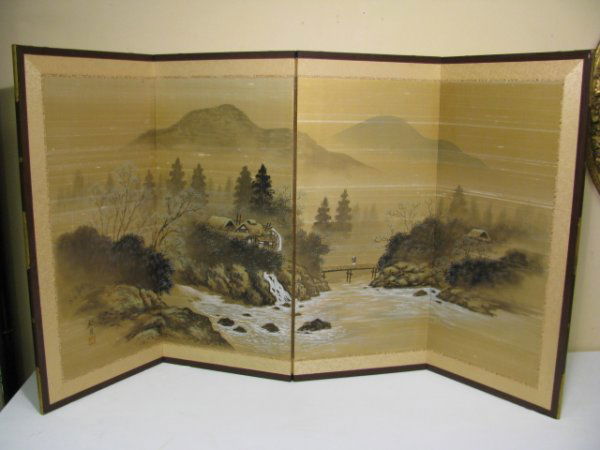 JAPANESE FOUR PANEL SILK HAND PAINTED LOW SCREEN