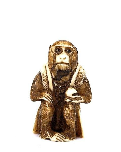 Japanese Ivory Netsuke Monkey Hold Peach Sg