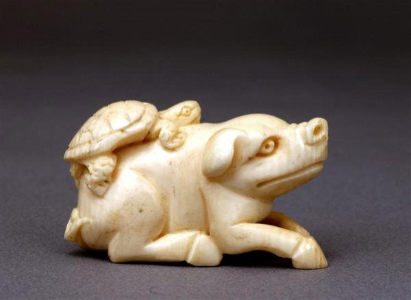 Japanese Ivory Netsuke Turtle Tortoise Pig Hog Sg