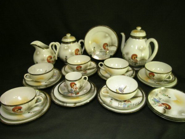 JAPANESE PAINTED EGG SHELL PORCELAIN TEA SET 29PC