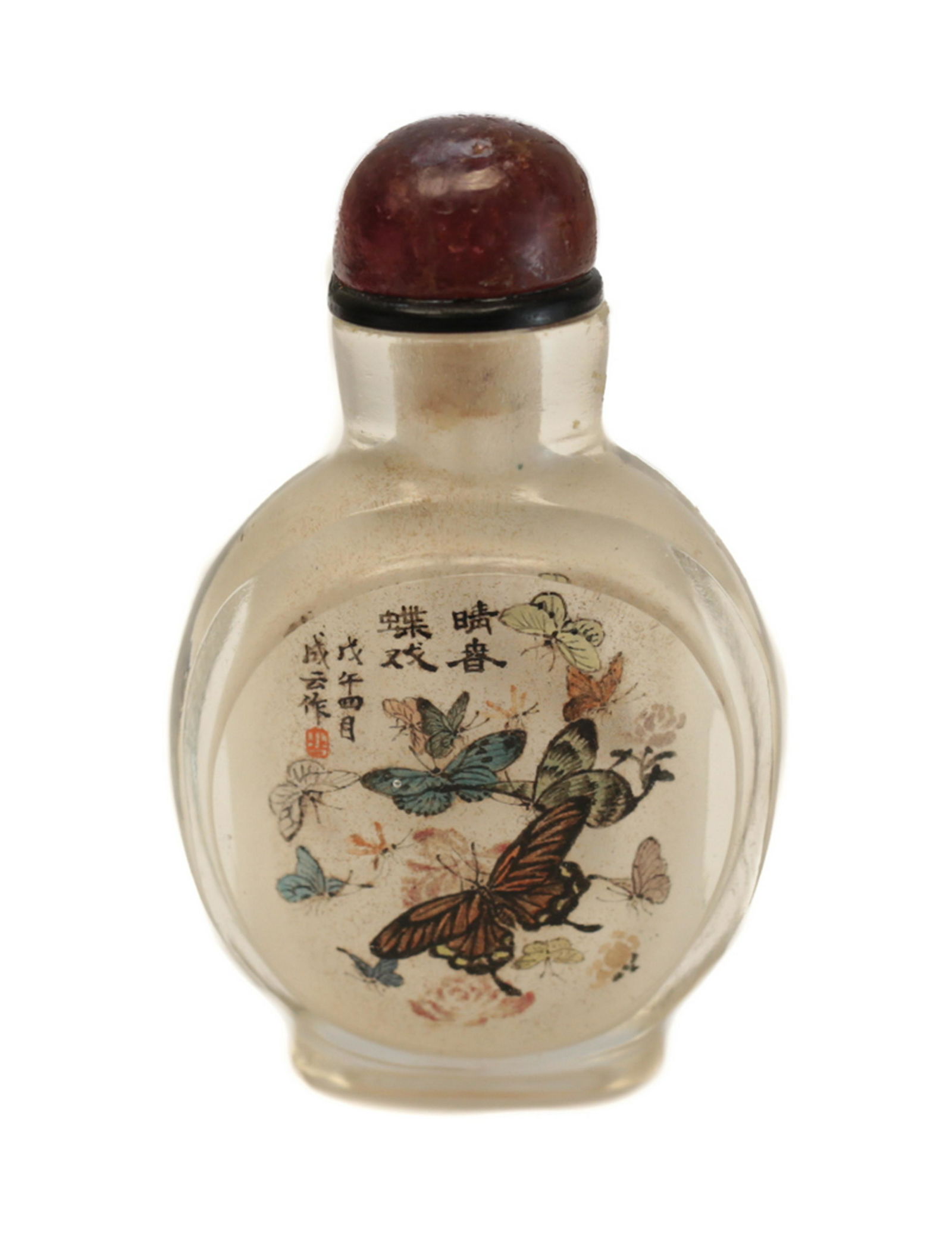 Qing Dynasty agate pretty carved butterfly pattern snuff bottleEastern Art Auction House4.6(241)$1004 days Left