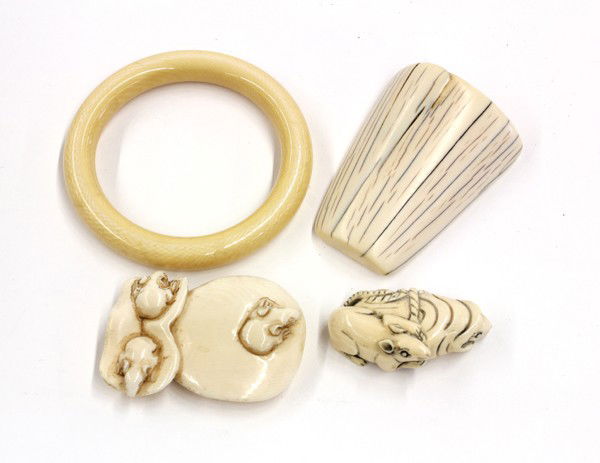 Sold3 Exceptional Antique Japanese Netsuke Items3 Exceptional Antique Japanese Netsuke Items with Subjects of Animals. Condition: Excellent. Dimensions: Largest H- 2.75". Provenance: From a Private Brooklyn, NY Home. Please note the absence of a CoSee Sold Price