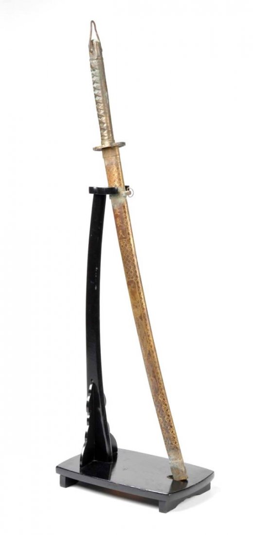 Non antique samurai swords on wood stand, decorative, longest in sheath measures 40" long. NiceJMW Auction Service4.6(497)$40Apr 10, 2026