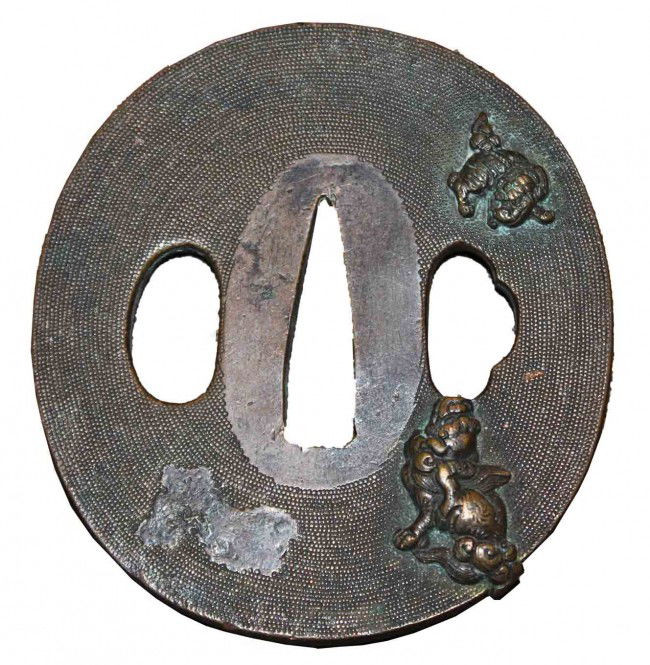 Japanese Tsuba with Foo Dogs