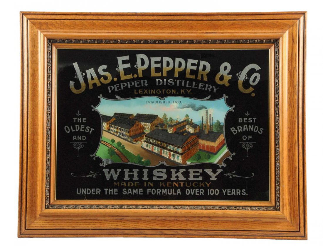 Jas. E. Pepper & Co. Whiskey Reverse Glass Sign.