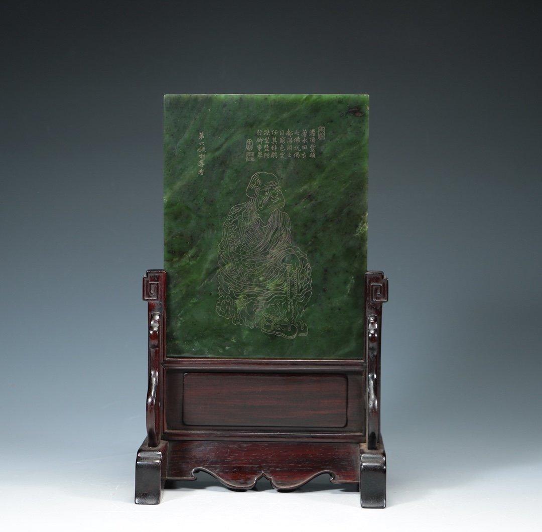 JASPER CARVING OF ARHAT TABLE SCREEN