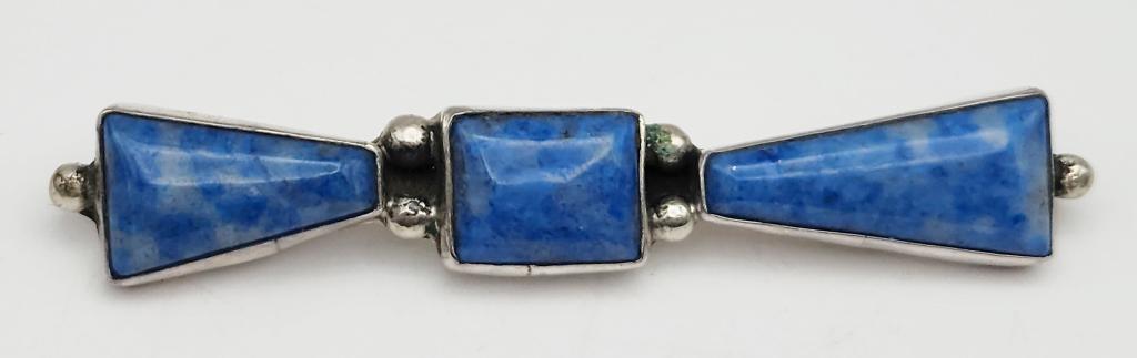 JB STERLING BROOCH WITH LAPIS? STONE DESIGN