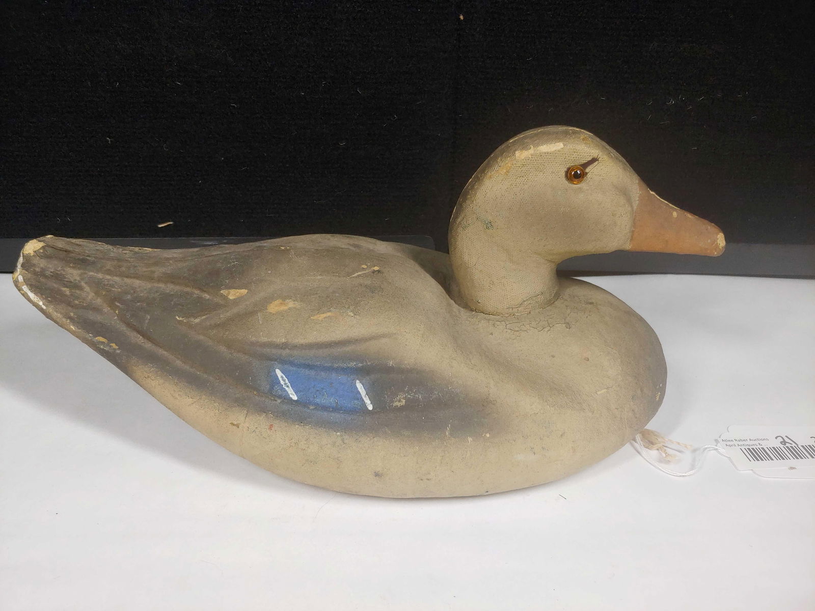 Sold(2) DUCK DECOYSPAPER MACHE BY J.O. HIGGINS AND WOOD CARVED DECOY WITH GLASS EYES 7" X 15 1/2" LARGEST PLEASE READ CAREFULLY -THIS IS AN ONLINE ONLY AUCTION. WE WILL BE TAKING ABSENTEE AND PHONE BIDS ALSO. Terms forSee Sold Price