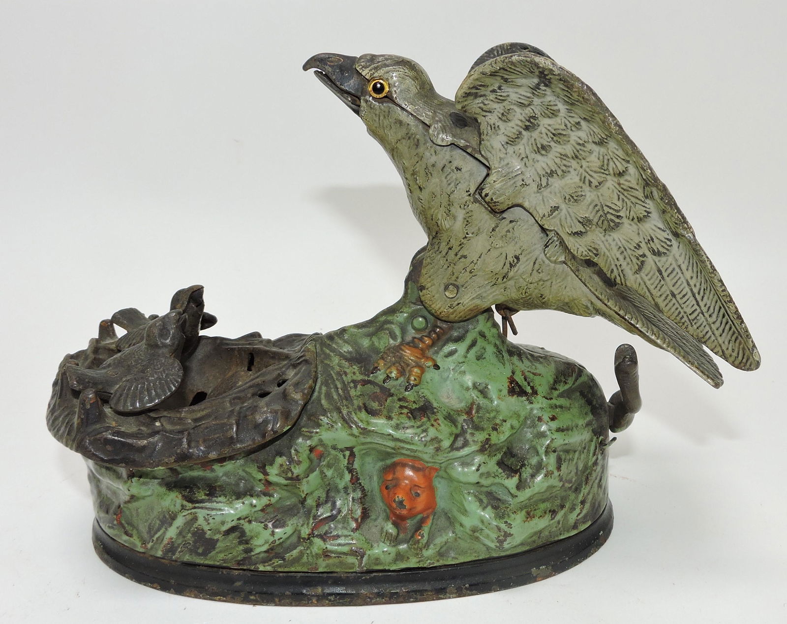 VINTAGE CAST IRON EAGLE & EAGLETS MECHANICAL BANK4 days LeftEagle and Eaglets BankMar 07, 2026J.I. Case Old Abe Cast Iron Eagle Figural Coin BankMar 16, 2026Vintage Antique Cast Iron Painted Coin Bank OwlFeb 24, 2026Cast Iron Shore Bird Counter BellMar 07, 2026Eagle Moto Mascot4 days LeftPair of Antique Cast Iron Snow EaglesFeb 28, 2026Rare 19th Century Cast Iron Race Horse Bank by J & E Stevens Co 18714 days LeftOwl Turns Head BankMar 07, 2026Mid Century Empire Metal Ware Corp. Electrified Toy StoveMar 16, 2026Miniature Blue Jay by A. Elmer Crowell (1862-1952)4 days LeftParrot cast iron doorstopMar 28, 2026Miniature Brown Thrasher by A. Elmer Crowell (1862-1952)4 days LeftJ.&E. Stevens cast iron mechanical bank9 hrs LeftLion & Two Monkeys cast iron mechanical bankMar 28, 2026Antique Cast Iron Nut Cracker DogMar 02, 2026