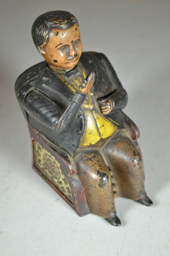 Tammany BankMar 07, 2026Classic Tammany Bank - Brown CoatMar 07, 2026Paddy and His Pig BankMar 07, 2026Uncle Sam BankMar 07, 2026Clown on Globe BankMar 07, 2026FERNAND MARTIN BOY IN CHAIR3 days LeftThe Magician BankMar 07, 2026Cast iron jockey horse tieMar 27, 2026Yellow Lilliput BankMar 07, 2026PERRY & Co CLOCKWORK BLACK DANCERMar 14, 2026Organ Bank with Boy & GirlMar 07, 2026Give Me a Penny - Twist PinMar 07, 2026Elaborate Pony CartMar 07, 2026New Creedmoor BankMar 07, 2026Ventriloquist DummyMar 11, 2026Creedmoor BankMar 07, 2026