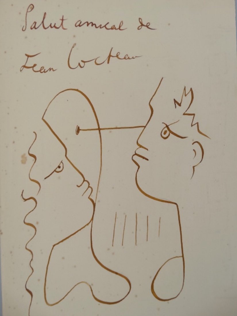 Jean Cocteau drawing on old paper, attributed.