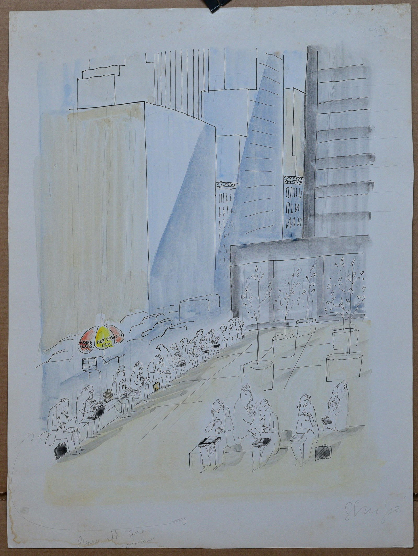 SoldJean-Jacques Sempeillustration, Lunchtime 26"x19" pen & ink with color signed LR, annotated "please add some women" LLSee Sold Price