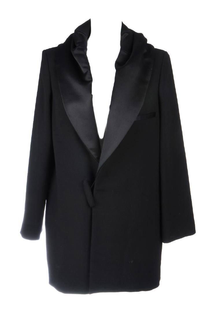 SoldJean Paul Gaultier, Black Bubble CoatJean Paul Gaultier, Black Bubble Coat Three-quarter length coat in black wool with a black shimmery polyester 'bubble' outer layer. Stand collar with snap closures. Full-length bishop sleeves witSee Sold Price