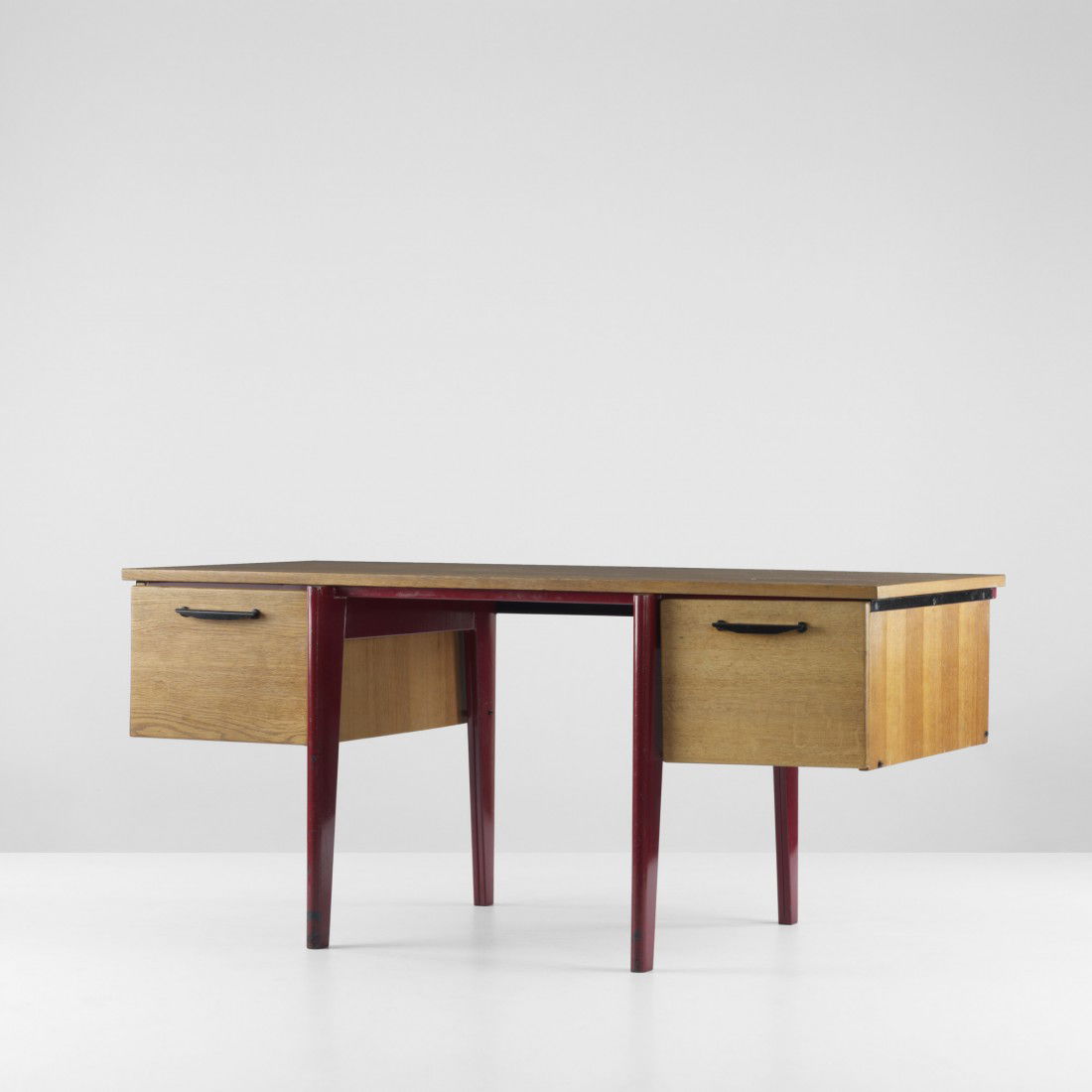 SoldAfter Jean Prouve, Student deskAfter Jean Prouve Student desk France, c. 1950oak, painted steel, iron 25.5 h x 23.5 w x 32 d in (65 x 60 x 81 cm) Provenance: Private Collection | Rago, Modern, AprilSee Sold Price