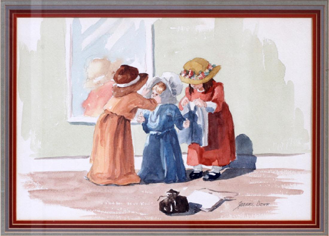 SoldJeanne Masson(Hilton Head, South Carolina, mid 20th century) Watercolor on paper titled on verso ÒCountry BornÓ. Signed lower right. Good overall condition nicely matted and framed. Sight size: H13 1/2"See Sold Price