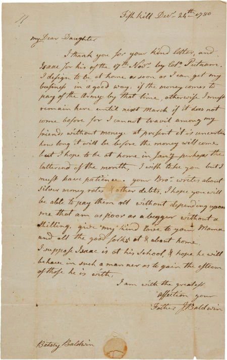 Jeduthan Baldwin Autograph Letter Signed. One p