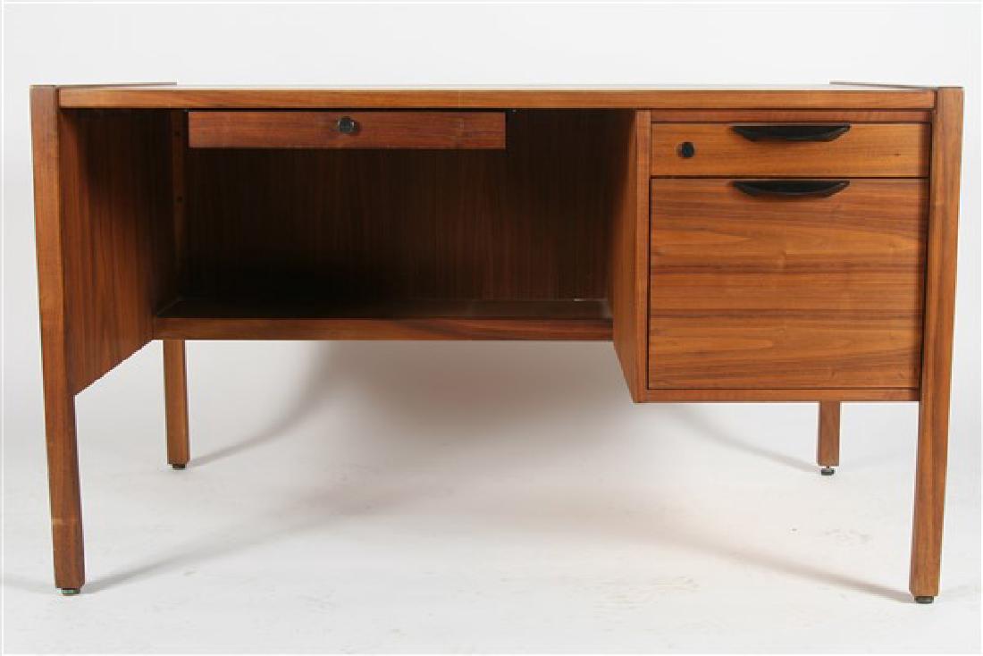 SoldJens Risom - Walnut DeskDescription - A Jens Risom walnut, single pedestal desk. Dimensions - 28.5" x 52" x 28See Sold Price