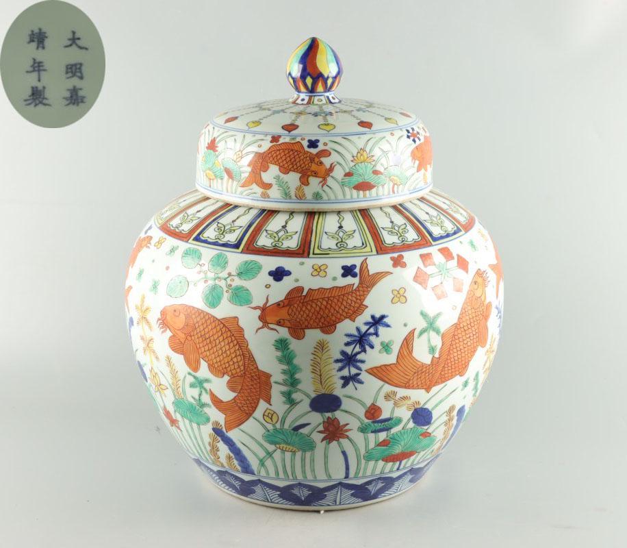 A Rare Blue and White Wucai Fish and Algae Pattern Cover Jarharbor auction inc4.5(28)$750(3 bids)4 days Left