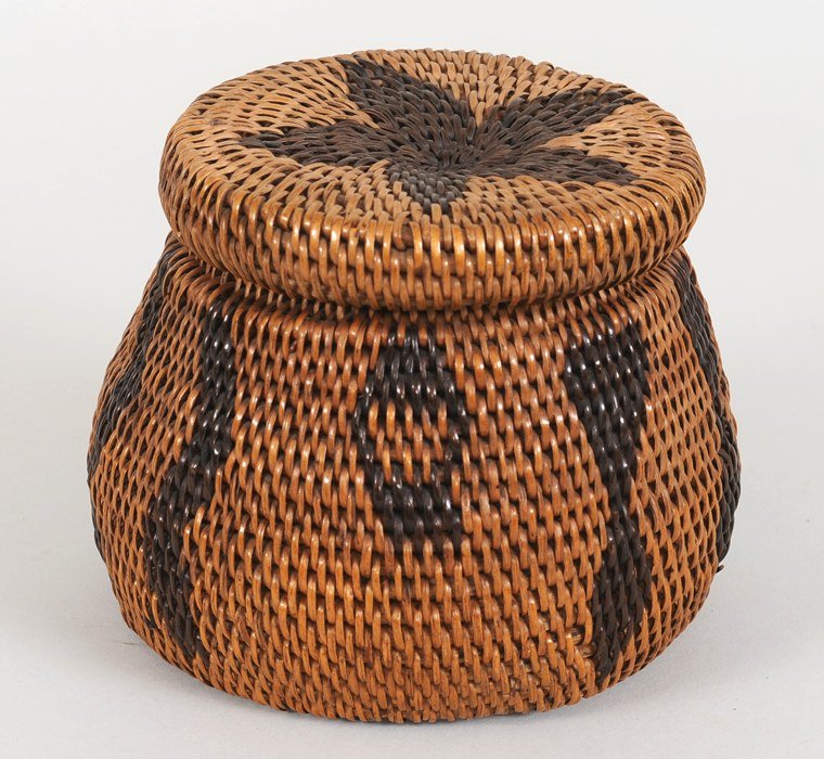 Jicarilla Apache Lidded Basket Made with Willow and