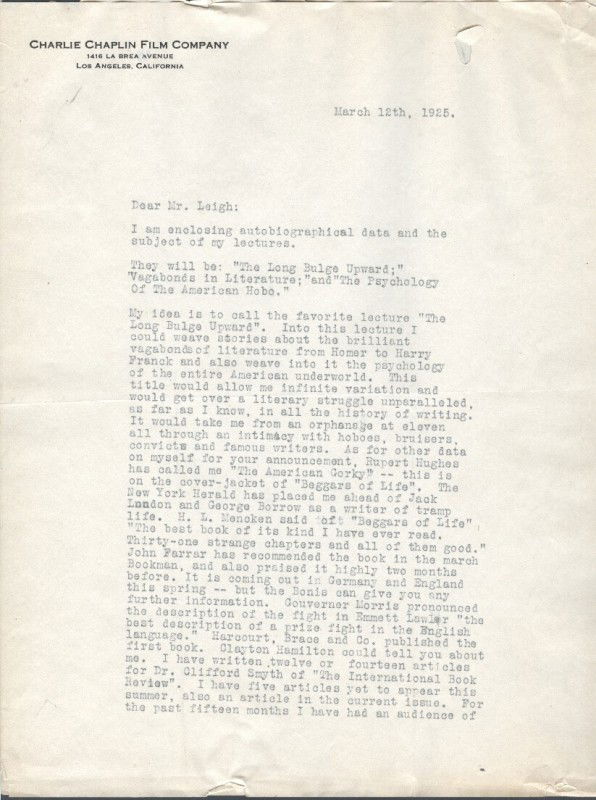 JIM TULLY (1886-1947) SIGNED LETTER