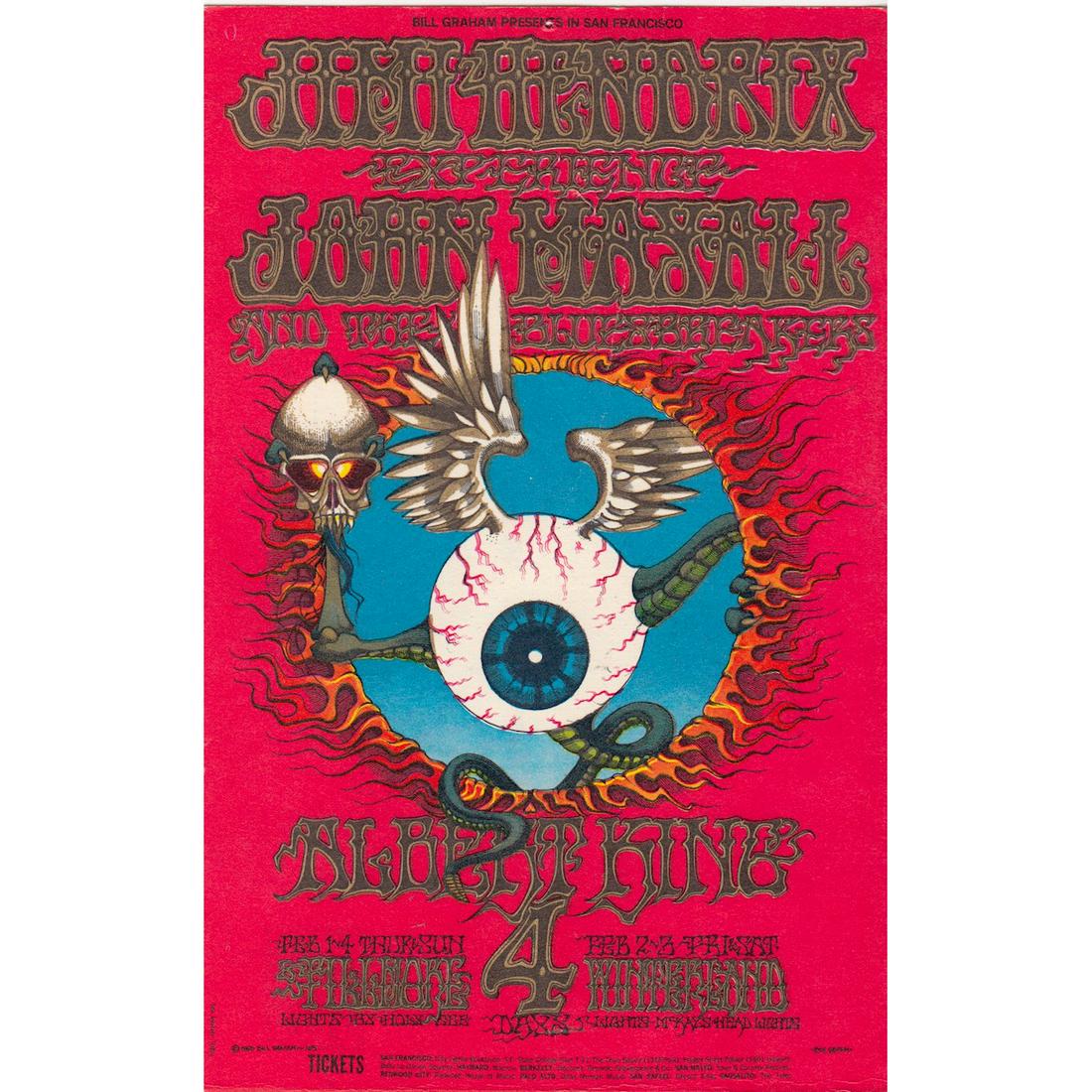 SoldJimi Hendrix flying eyeball poster by Rick Griffin Excellent ConditionAuthor: Griffin, RickTitle: Jimi Hendrix Experience, John Mayall and the Blues Breakers, and Albert King at the Fillmore Auditorium and Winterland Place.. Published: San Francisco.. Publisher:Bill GraSee Sold Price