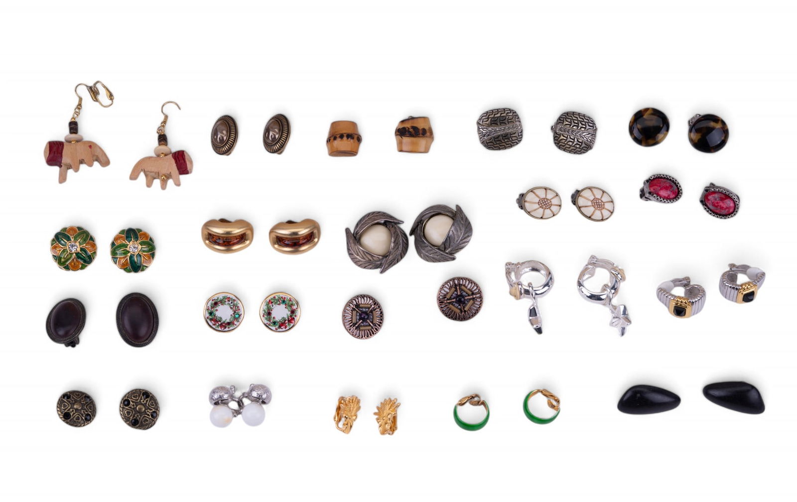 SHREVE, CRUMP & LOW CO.: A PAIR OF PLATINUM, MOONSTONE, SAPPHIRE, AND DIAMOND EARCLIPS, CIRCA 1950Miriam Haskell Brooch & Pr Earrings7 days LeftDIAMOND AND YELLOW GOLD HUGGIE HOOPSMar 18, 2026Collection Of Art Deco Inspired Head Pieces, Sterling Silver Earrings, Shoe Buckles, And More6 days LeftPell, Etc. Costume Jewelry, 21 Pcs.Mar 26, 2026Vintage Tiffany & Co. 1980’s Geometric Onyx MOP 18k Yellow Gold Clip On Earrings14 hrs LeftPair Gold Tone Red Crystal Heart Brooches12 hrs LeftMiriam Haskell, Alexis Bittar, DKYN & More Jewelry2 days LeftA group of antique gem-set and gold stick pinsMar 19, 202618kt. Bulgari "J" Hoop Earrings12 hrs LeftPr Modernist Sterling & Amber Earrings & Brooch7 days LeftVintage Gold Tone Brown Lucite Earrings12 hrs LeftVintage Unsigned Cini Virgo Design Sterling Silver Clip Earrings 3/4 InchMar 19, 20264 Pcs Costume Jewelry7 days LeftSeasonal Costume Jewelry4 days LeftCara China, Etc. Floral Costume Jewelry, 17 Pcs.Mar 26, 2026