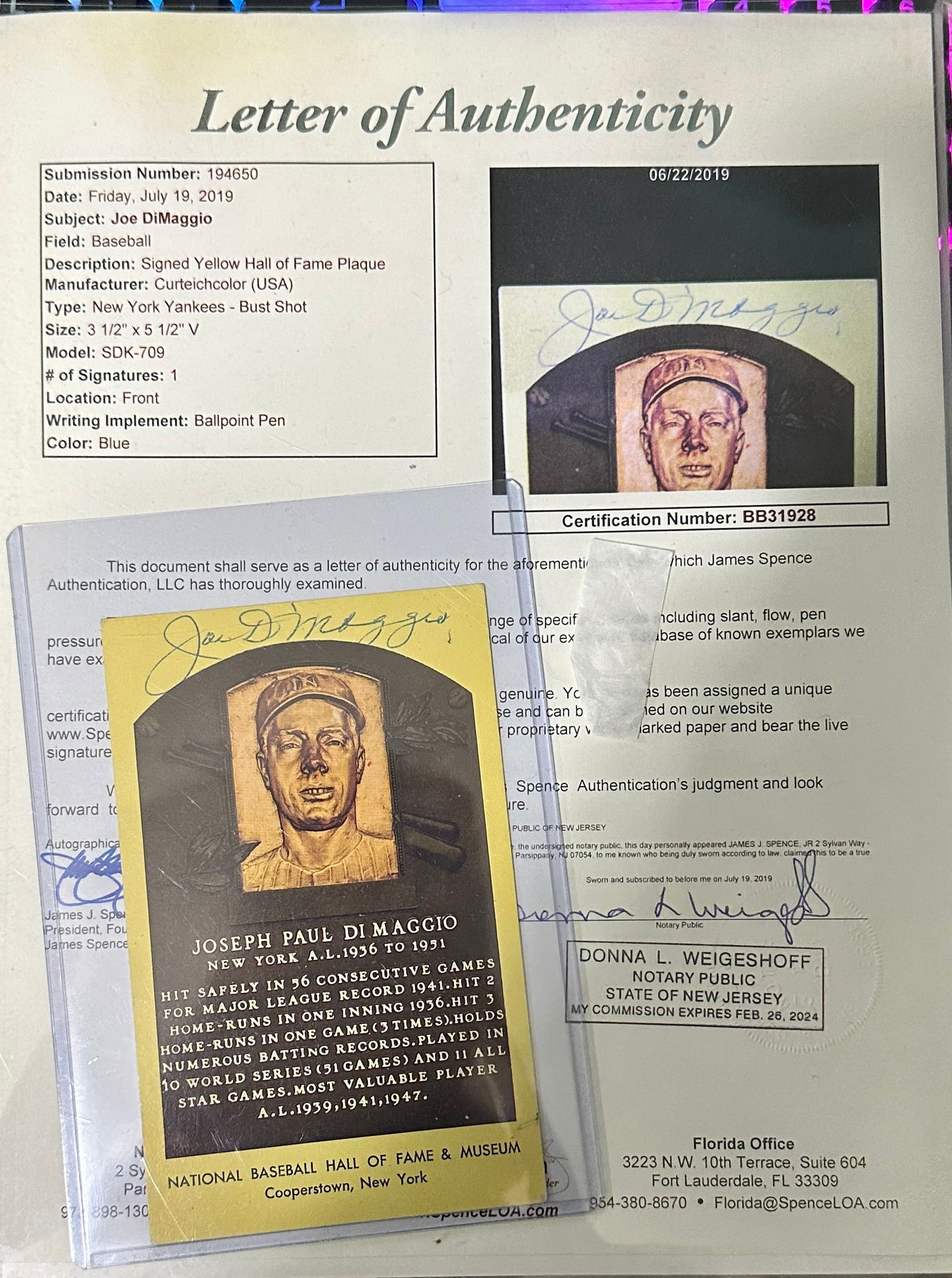 Joe Dimaggio Autographed Hof Plaque Jsa Coa