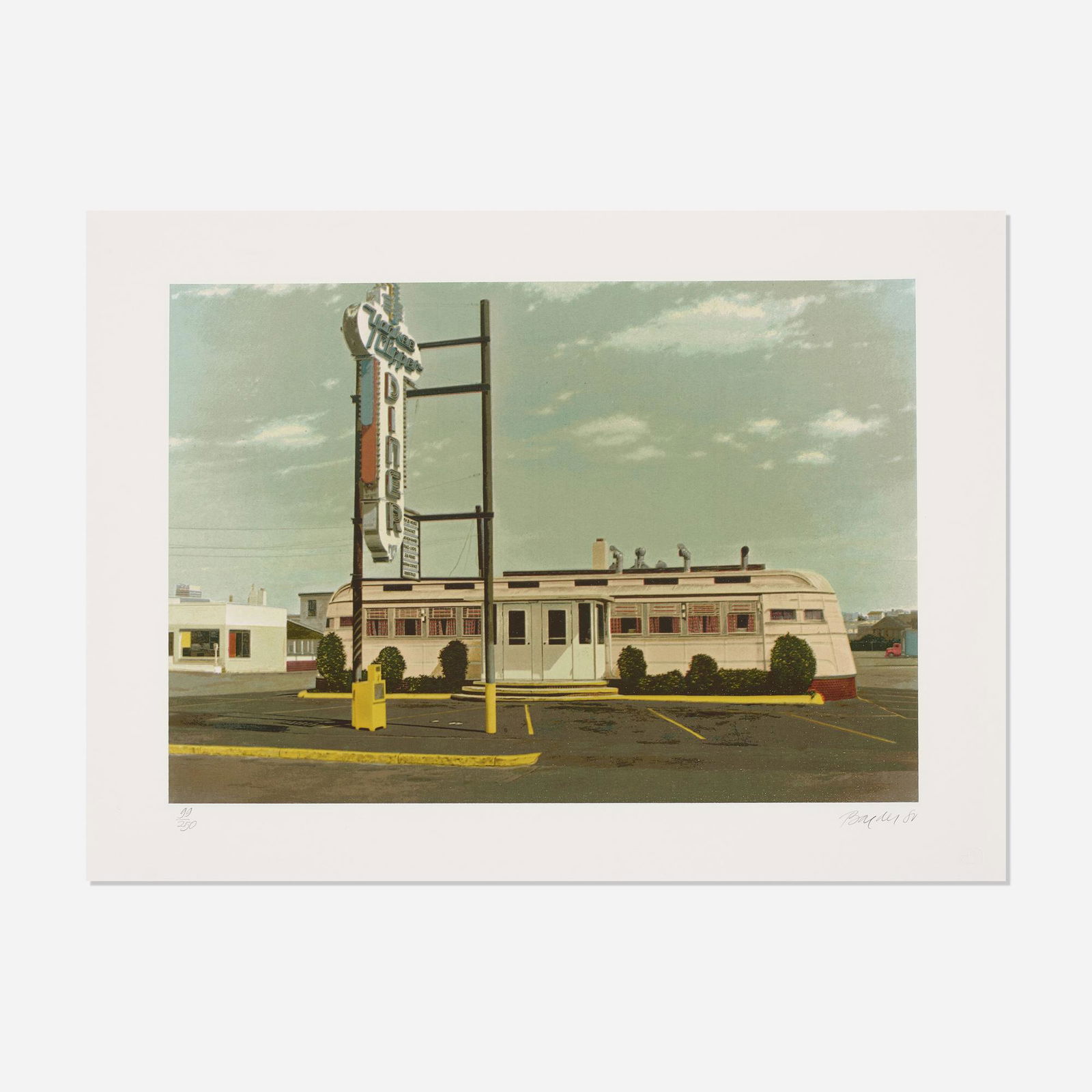SoldJOHN BAEDER / White Palace Cafe (1980)John Baeder (American, b. 1938) White Palace Cafe, 1980 Serigraph on paper 17" x 22 1/2" Pencil-signed, dated, and numbered (Artists proof #7/30) to the bottom margin. Presented bSee Sold Price