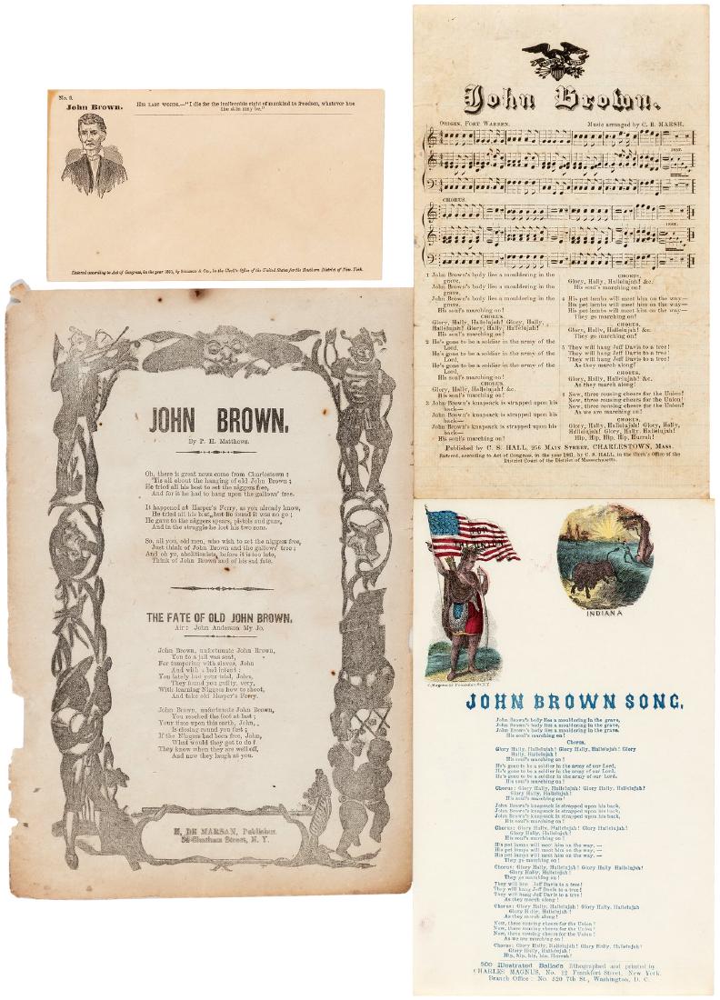 JOHN BROWN: THREE SONG SHEETS AND PORTRAIT ENVELOPE.
