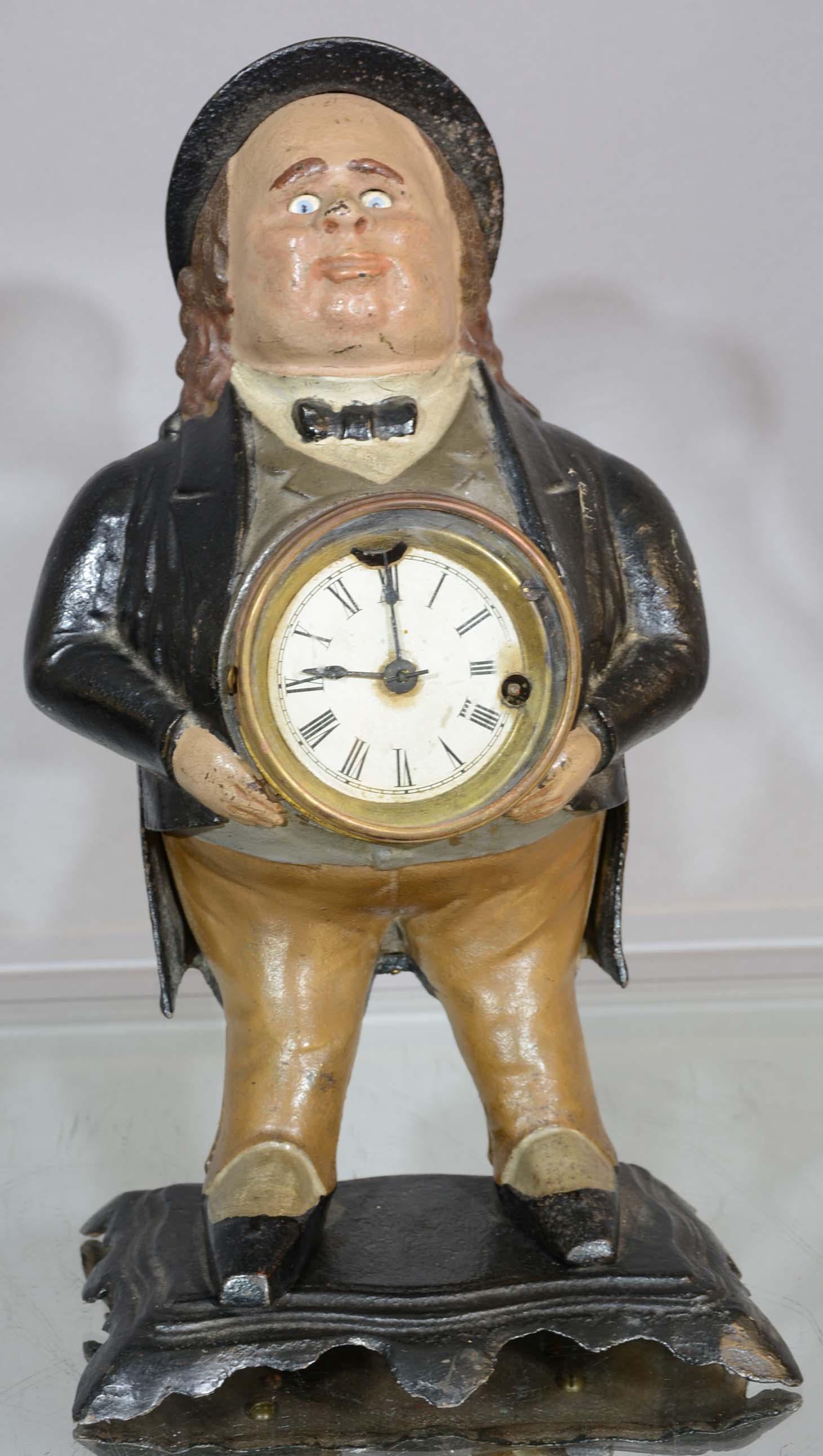 A Lot of 2 Clock Men20 mins LeftA Louis Philippe Patinated Bronze and Sienna Marble Figural Mantel ClockMar 11, 2026CUTE Clock Tower Jewelry Box!A Continental Cast Metal "Clock Peddler" ClockMar 15, 2026Antique 1902 Tin Alarm Clock – Early Wind-Up USA3 days LeftAntique Cast Iron Figural Clock Case John Bull blinking eye3 days LeftAntique European Figural Mantel Clock, Spelter, c. 19003 days LeftRoyal Doulton HN2279 The Clockmaker FigurineANTIQUE VICTORIAN VEER AMSTERDAM MANTLE CLOCKMar 29, 2026ANTIQUE FIGURAL SHELF CLOCK4 days LeftFIGURAL MANTLE CLOCK4 days LeftVintage Sessions 8 Day Cathedral Mantel Clock1 day Left19th Century French Ormolu Mantle Clock,Mar 13, 2026Antique French Bronze Figural Mantel Clock,19th.CMar 15, 2026Benny Carter. Lady Liberty ClockMar 14, 2026VICTORIAN SHELF CLOCK4 days Left