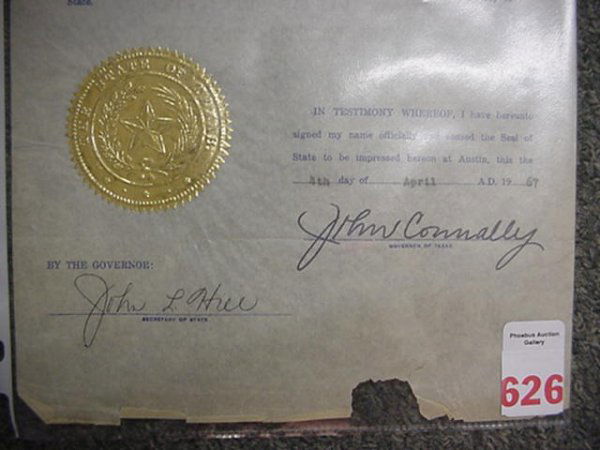 John Connally Autograph on Full Pardon