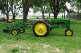SoldRestored John Deere Model B Tractor with John Deere 2 bottom plow.Restored John Deere Model B Tractor with 2 bottom plow. Two-plow row-crop tractor produced by John Deere from 1935 - 1952. Tractor appears complete. We did not attempt crank start. Includes restored pSee Sold Price