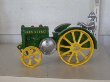 JOHN DEERE TRACTOR, YELLOW METAL WHEELS