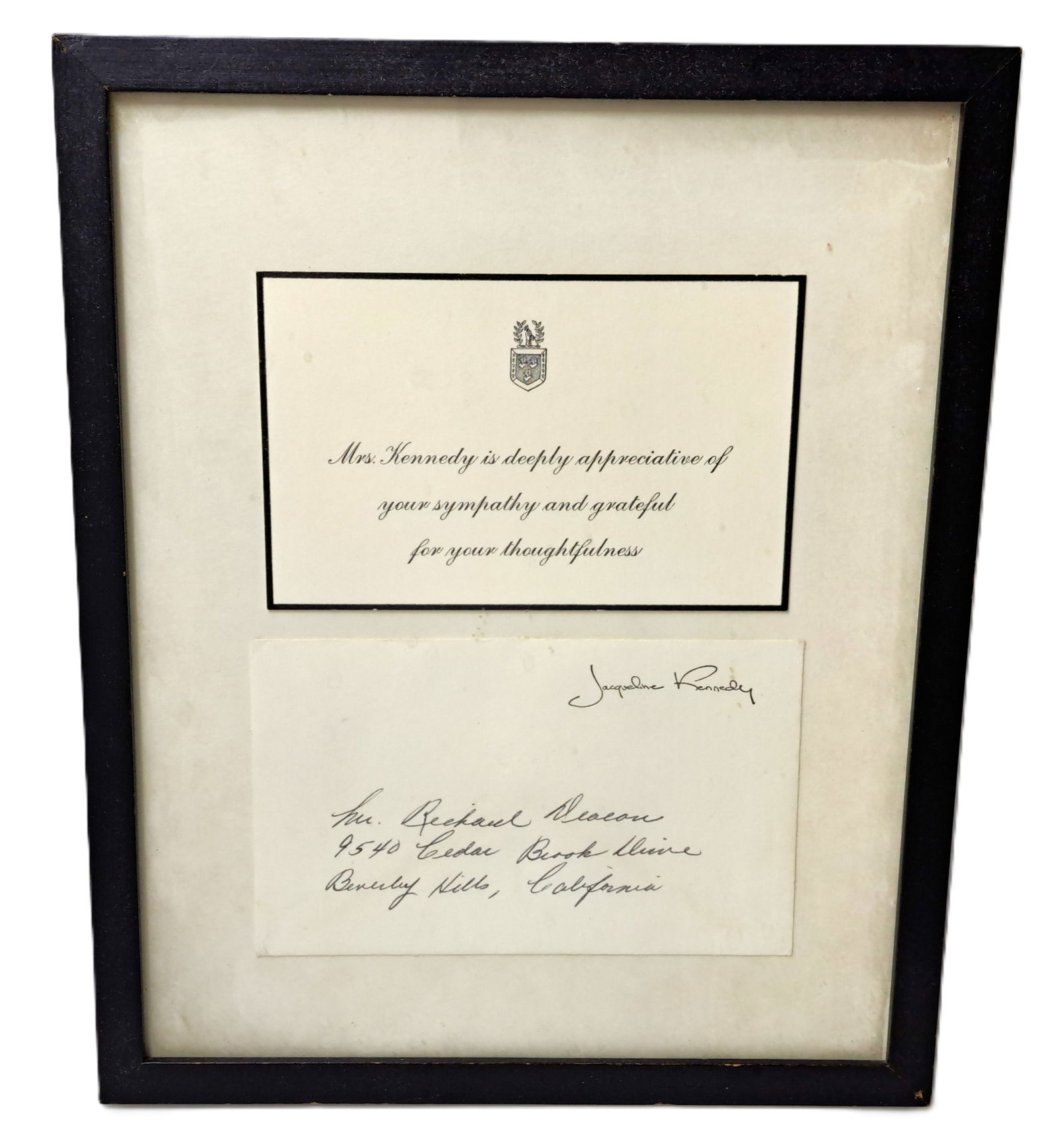 John F Kennedy Jacqueline Kennedy Sympathy Card to Richard Deacon