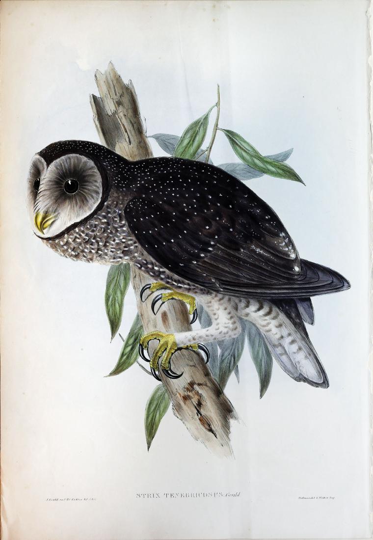 John Gould Lithograph Sooty Owl