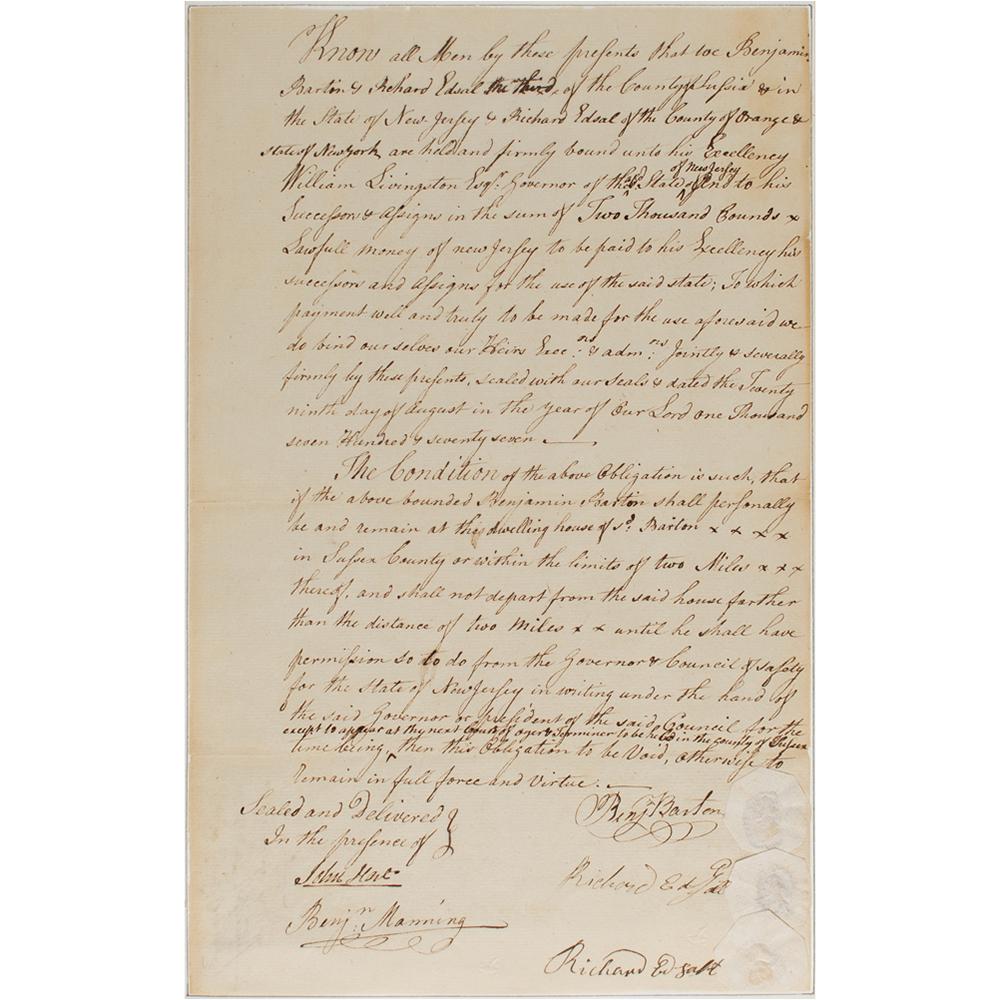 Late 18th Century Pennsylvania Colonial Land CaseMar 15, 20261796 English Manuscript Warrant of Attorney LondonFort Constitution – War of 1812 Era Battalion Orders with 2 John A. Dix Orders – ManuscrState of New Hampshire – Militia Brigade Orders – War of 1812 Era Document – 1815William Thornton 1817 Washington DC Capital Architect Signed Manuscript Document Richard Bland LeeMar 29, 20261773 Colonial Court Indictment The King vs. McGile, Signed by Attorney General Andrew AllenMar 15, 20261763 Signed Legal Opinion Bank of England Probate DocumentMar 15, 20261798 Jared Ingersoll, Constitution Signer DocumentMar 15, 20261779 Revolutionary War Pennsylvania Court DocumentMar 15, 2026Massachusetts 34th Regiment Discharge & more3 days Left1796 Robert Barnwell Speaker of the House Signed DocumentMar 15, 2026New York Supreme Court – 1814 Land Partition Decision – Manuscript Court OrderRobert Morris 1796 Signature Signer of Declaration Financial Receipt DocumentMar 29, 20261798 Brooklyn NY Insolvency Affidavit Signed by Jacobus L. Lefferts (Founding Brooklyn Family)Mar 15, 20261781 William Bradford Revolutionary War Pennsylvania DocumentMar 15, 2026Choctaw Nation Land Record Document, Signed by Orlando Brown, 1850Mar 07, 2026
