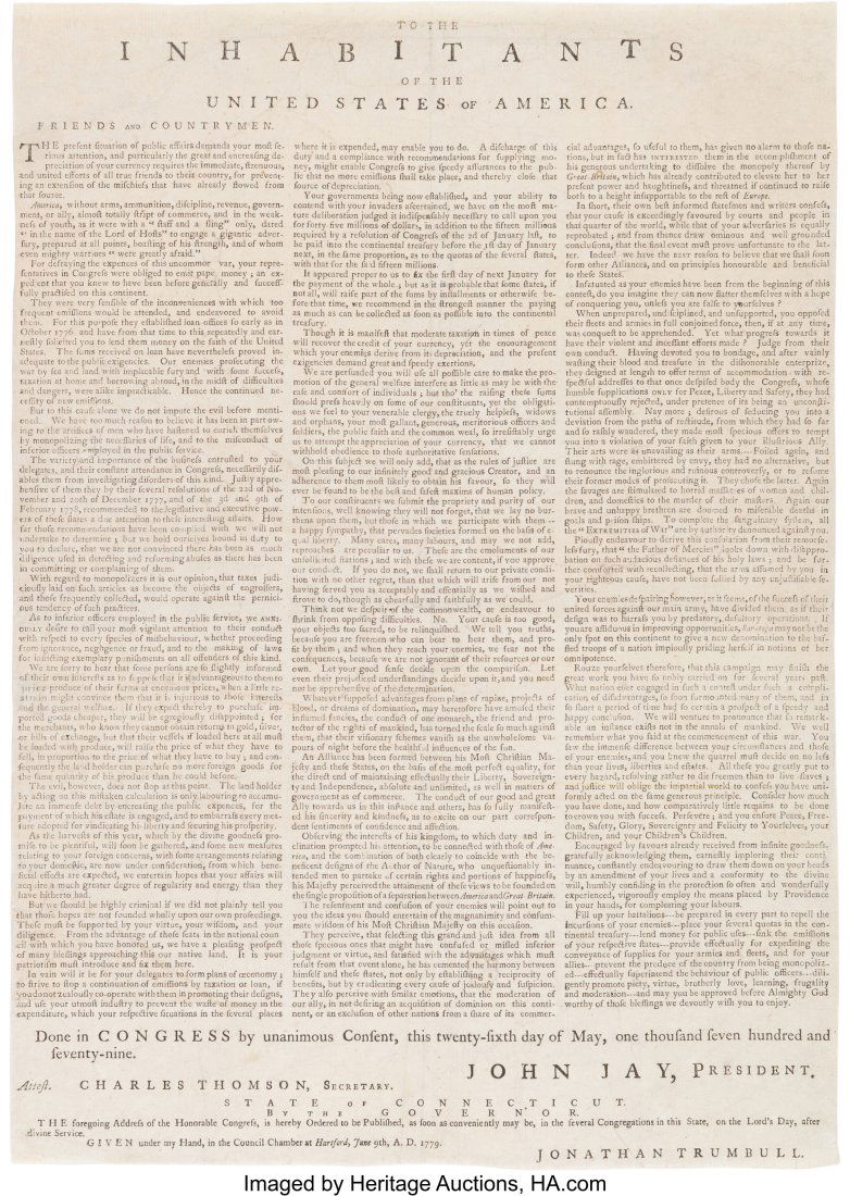 [John Jay and Jonathan Trumbull]. Continental Co