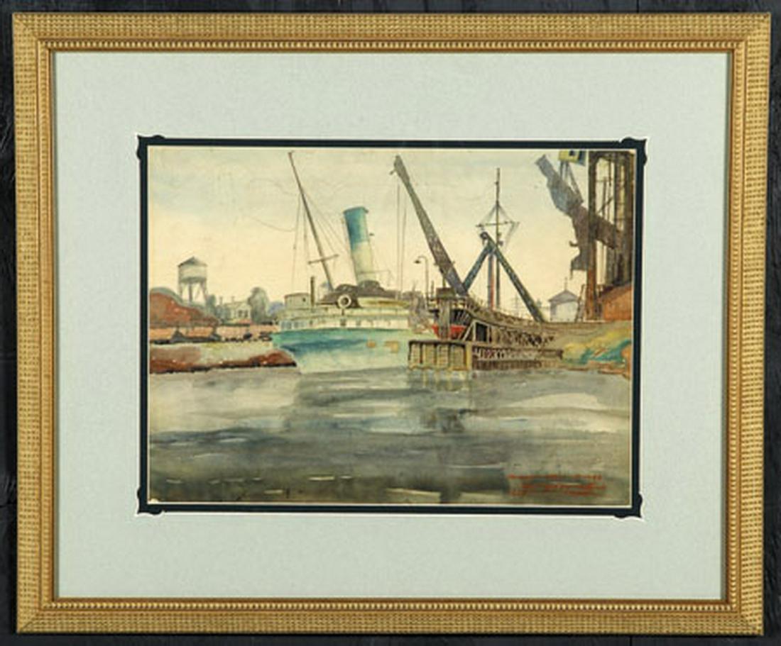 John Kelley signed W/c, Fairport, Ohio dock scene