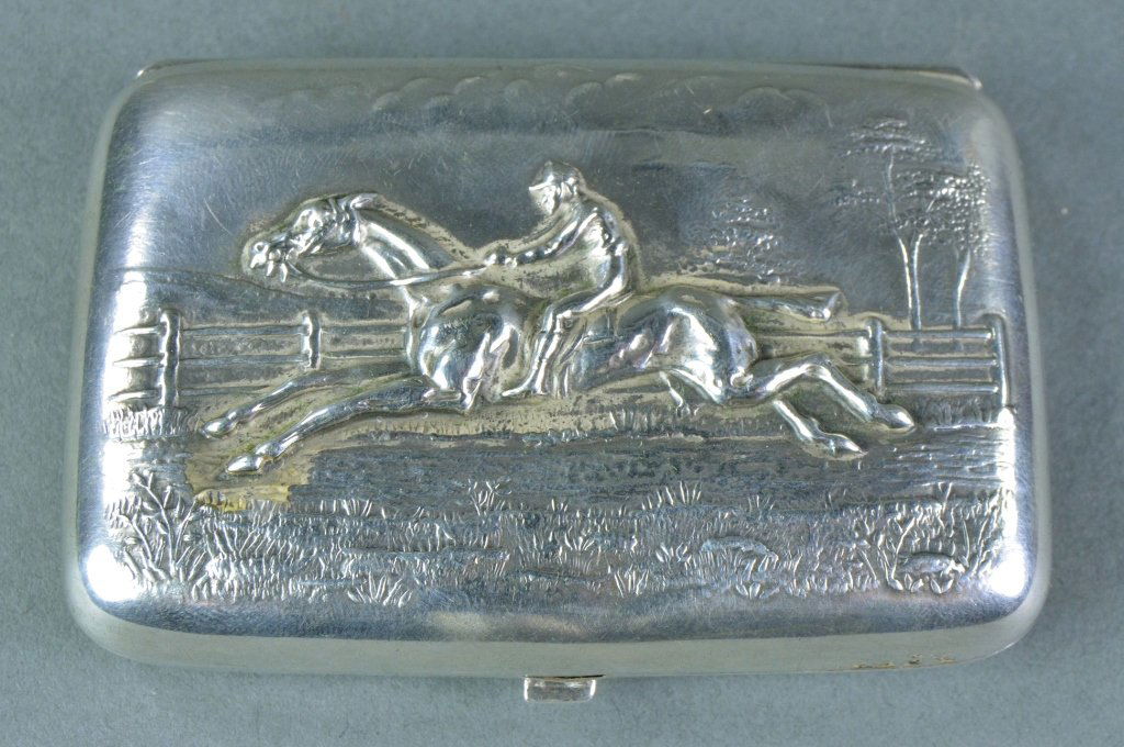 Gorham Art Nouveau Sterling Silver Cigar Card Box 1900sFeb 07, 2026Gorham Art Nouveau Sterling Silver Cigar Card Box 1900s1 day LeftA silver and enamel 'horse racing' box Padgett & Braham Ltd, Birmingham 19761960s Italian Silver-Plate Rearing HorseRare 1919 Longines Niello Pocket Watch Silver Rose Gold Horse Equestrian W1262Feb 19, 2026L. Becenti Sterling Silver Horse Story Teller Ring - Size 10.5Feb 07, 2026AN 18TH CENTURY DUTCH SILVER MOUNTED BOXWOOD TREEN SNUFF BOX decorated with a figure and a horse witFeb 10, 202620th Century Sterling Silver Equestrian Enamel Pill Box1 day LeftVintage Copper Solid Cigarette Case or Jewelry box 6 3/4" x 3 3/4" Featuring a raised design of an1 day LeftRUSSIAN SOVIET SILVER CIGARETTE CASE fr. SOTHEBY'sFeb 07, 2026German Sterling Silver Repoussé Snuff Box Pendant, Figural Scene, 19th CenturyFeb 20, 2026A good Victorian cast silver horse sculpture Alexander Crichton, London 1879T. R. Fehrenbach | 950 Silver Cigar Case7 hrs LeftRUSSIAN IMPERIAL SILVER SNUFF BOX, 1827Feb 07, 2026RUSSIAN SOVIET SILVER CIGARETTE CASE fr. SOTHEBY'sFeb 07, 2026Horse Figurine, cast metal (hollow), gold/silver toned on wooden base, unmarked, c.mid 1900s, com...