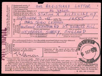 John Lennon signed registered post card 1969