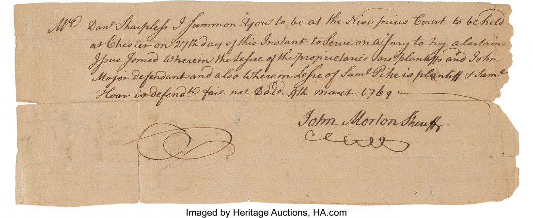1801 New York Mayors Court Manuscript BailDeclaration Signer Lewis Morris Autograph Docume6 days LeftElias R. Wightman Autograph Land Sale Document S6 days LeftPhilip Dimmitt Autograph Document Signed, with a6 days LeftDeclaration Signer Robert Morris Autograph Lette6 days LeftDeclaration Signer William Floyd Autograph Lette6 days LeftJames II Signed Warrant for the Appointment of a6 days LeftAlamo Defender Dolphin Floyd Signed Promissory N6 days LeftState of New Hampshire – Militia Brigade Orders – War of 1812 Era Document – 1815Diving.-Tobago.- Poyntz (Captain John) Letter to James Vernon, English Whig politician, 1699.Mar 05, 2026John Hancock Autograph Document Signed. One part6 days LeftCarolina Worn Out Kettle Document, Discharge, etc.Mar 02, 2026William Thornton 1817 Washington DC Capital Architect Signed Manuscript Document Richard Bland LeeMar 29, 2026Shenandoah Valley: Officer, Twice POW & EscapedMar 02, 2026William B. Travis Autograph Document on a Petiti6 days LeftSamuel Adams Militia Appointment Signed. One par6 days Left