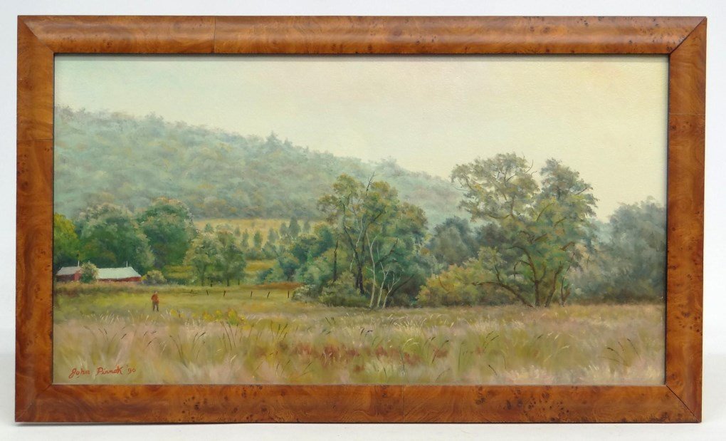 SoldJohn Hammer, Landscape - Oil on CanvasFramed pastoral scene. Signed lower right. [Art: 17" x 21 1/2"; Frame: 25" x 30 1/4"]. In overall good condition.See Sold Price