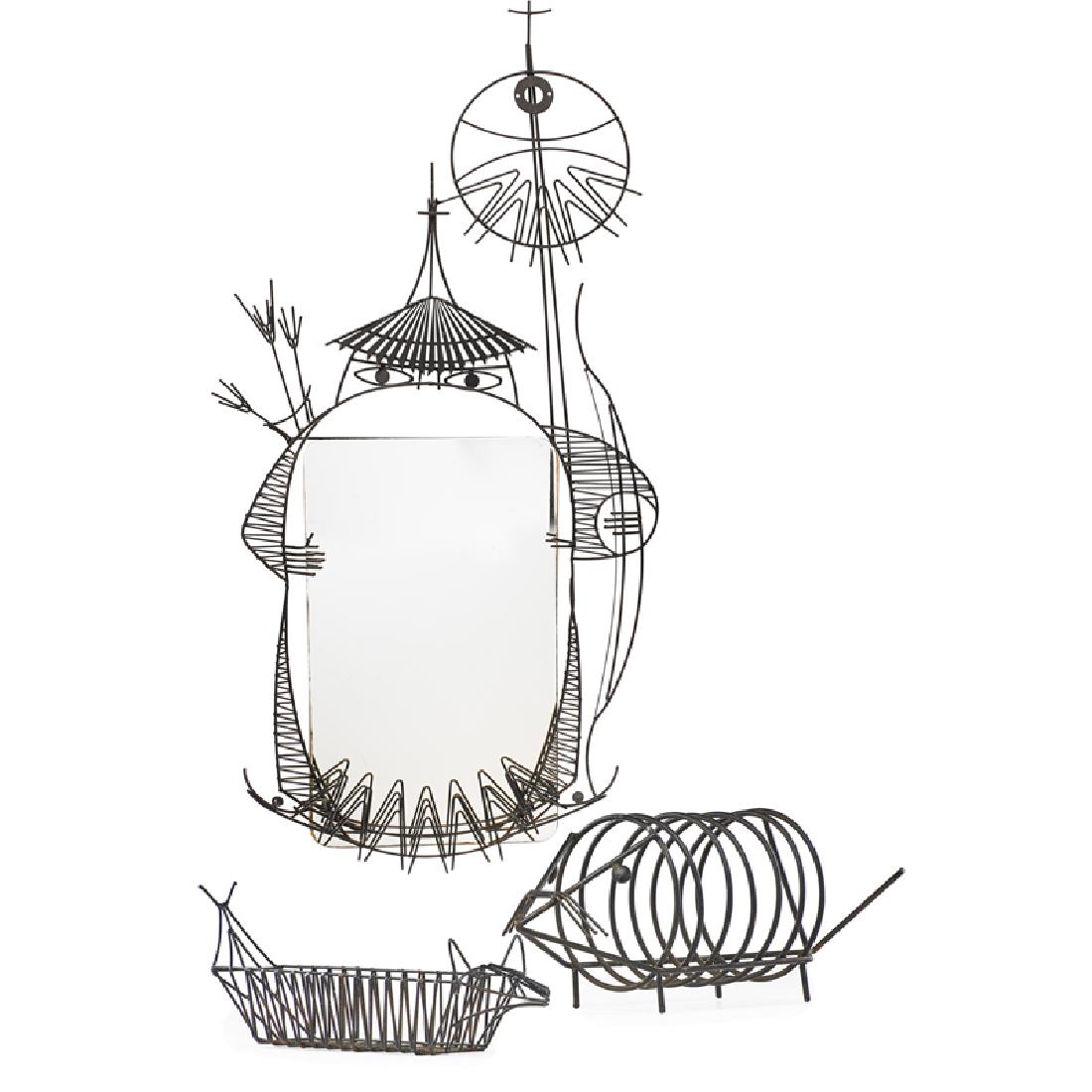 Lot of sterling silver tableware. Various handled baskets and dishes, all except for one withoutMar 01, 2026LOT OF VINTAGE KITCHENWAREFeb 26, 20265-glass jar country store displayMar 28, 2026Unique Wrought Iron Glass Basket Stand After Weinberg Risley6 days LeftFranco Albini for Raymor Thai Fish Trap Table and Hanging LampMar 04, 2026Curtis Jere-style Wire Sailboat Table SculptureFeb 27, 2026NINE AMERICAN PATTERN GLASS PICKLE CASTERS.2 days Left(9) Vintage Motor Oil Glass Bottles w Wire RackMar 21, 2026English Iron Coal Fireplace Tool Set & StandMar 07, 2026METAL LAUNDRY CART FILLED WITH STRING.2 days LeftMichael M. Glancy (US 20 C) Two Blown Glass Vessels Silvered Metal Copper StudyMar 15, 2026Continental Wrought Iron and Wood Bird CageFeb 26, 2026A SILVER PICKLE JAR STANDFeb 17, 2026THREE HAND LANTERNS 19th Century or Earlier Heights from 11.25" to 15".Mar 04, 2026English Silver Plate Serving Tableware, 8 Pcs.Mar 12, 2026(4) VICTORIAN ERA HAND-BLOWN ART GLASS BASKETS3 days Left