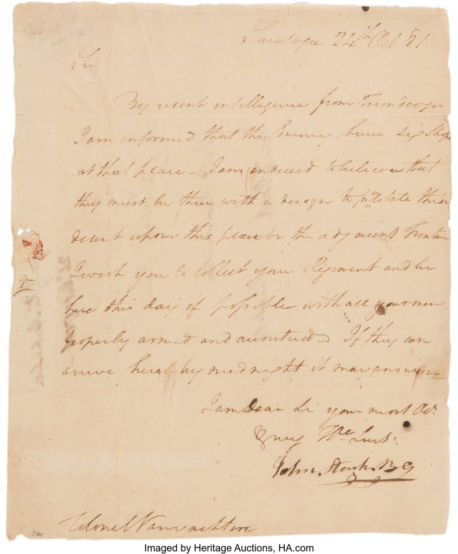 John Stark letter signed ("John Stark BG"). One
