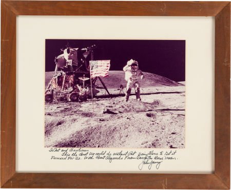 Eugene Cernan Apollo 17 Signed 8x10 Photo BAS Authenticated9 hrs Left[Apollo 16] JOHN YOUNG'S JUMPING SALUTEMar 12, 2026[Apollo 15] JAMES IRWIN SALUTES BESIDE THE U.S. FLAG, LUNAR MODULE AND THE FIRST LUNAR ROVERMar 12, 2026Apollo 11 Crew Signed Display by Armstrong Collins Aldrin Zarelli AuthenticatedMar 04, 2026Apollo 11 Crew Signed Display by Armstrong Collins Aldrin Zarelli AuthenticatedMar 05, 2026Buzz Aldrin Signed Custom Framed Display Apollo 11 JSA Authenticated3 days LeftFramed 30x24 NASA Autographed Print by Conrad Kranz Bean JSAMar 07, 2026[Apollo 16] JOHN YOUNG CONDUCTING SCIENTIFIC WORK AT THE DESCARTES RESEARCH SITE ON THE MOONMar 12, 2026Framed 8x10 Photograph Signed by Edwin Buzz Aldrin Apollo 11 Beckett Authenticated6 days LeftNASA Apollo 15 David R. Scott LRV photograph (PSA Type I).Mar 12, 2026Apollo 17] PORTRAIT OF EUGENE CERNAN, THE LAST MAN ON THE MOON, WITH THE ROVERMar 12, 2026[Apollo 12] PETE CONRAD HOLDING THE U.S. FLAG ON THE OCEAN OF STORMSMar 12, 2026[Apollo 11] BUZZ ALDRIN AT TRANQUILITY BASE WITH THE LM EAGLE, U.S. FLAG, AND EXPERIMENTSMar 12, 2026[Apollo 11] BUZZ ALDRIN AND THE FIRST U.S. FLAG ON THE MOONMar 12, 2026[Apollo 12] 3-PART PANORAMA OF ALAN BEAN AT THE LM INTREPID ON THE OCEAN OF STORMSMar 12, 2026[Apollo 15] DAVID SCOTT WITH THE TELEPHOTO CAMERA AND THE LUNAR ROVER AT STATION 10Mar 12, 2026