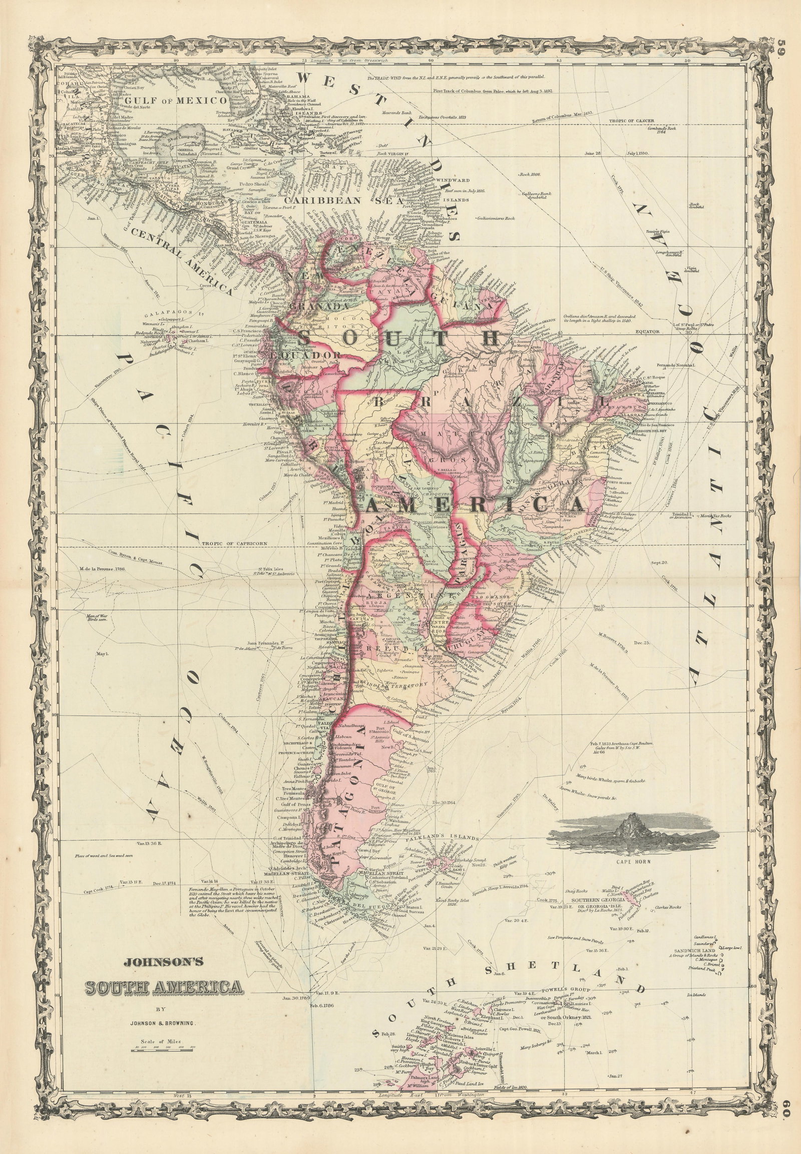 Johnson's South America. Bolivia with Littoral. Navigators' routes 1861 map