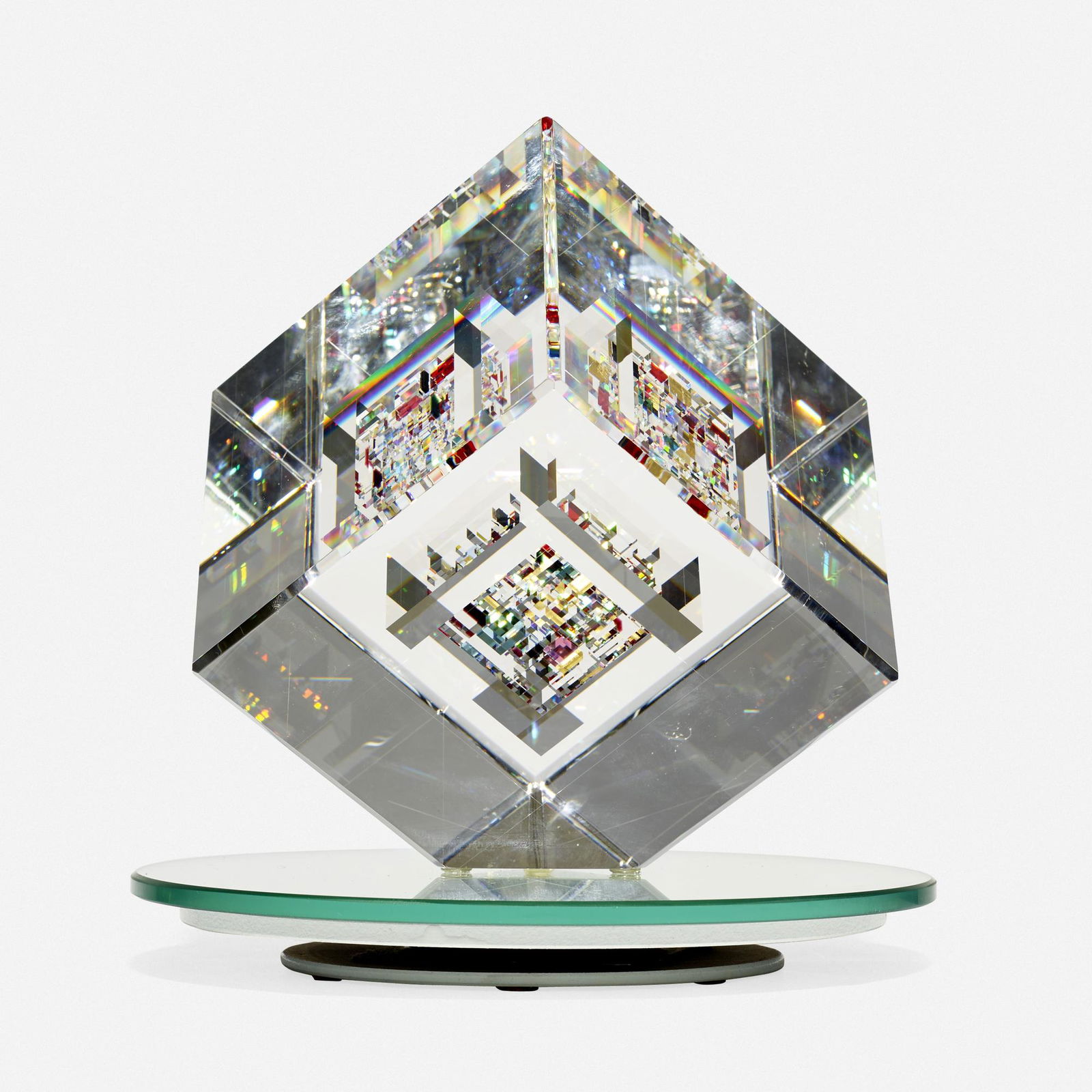 Jon Kuhn b.1949 Judah's Star Glass Cube Sculpture