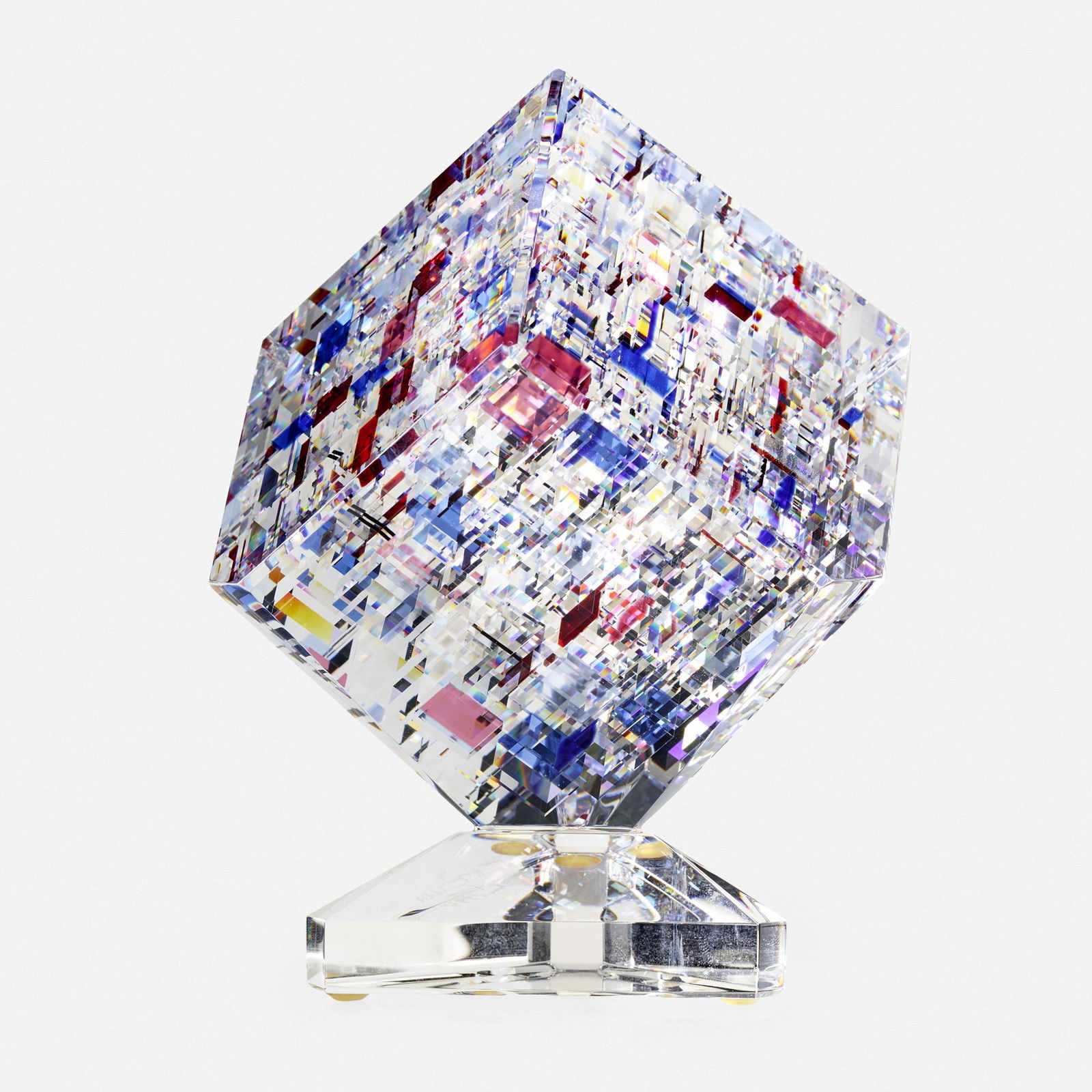 Jon Kuhn b.1949 Judah's Star Glass Cube Sculpture