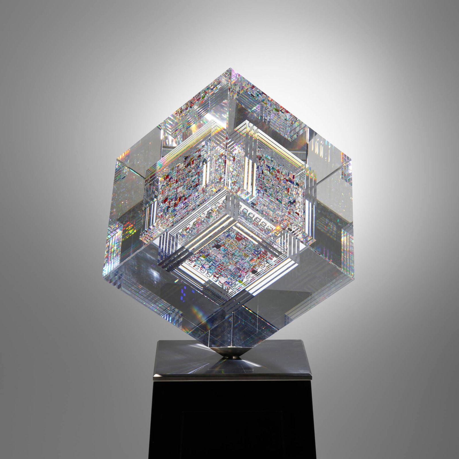 Jon Kuhn b.1949 Judah's Star Glass Cube Sculpture