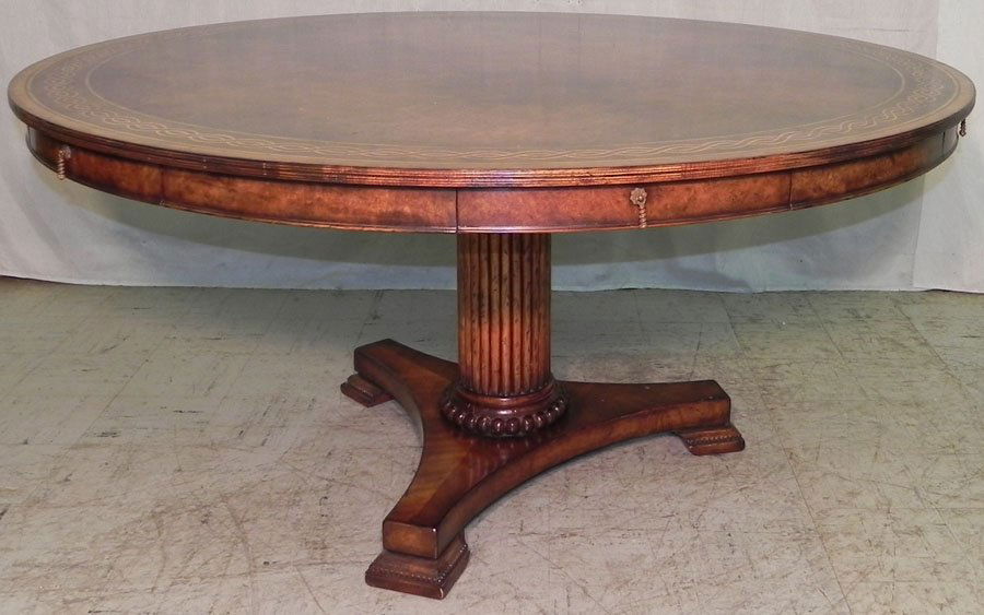 A Chippendale Turned Walnut Dished Tilt-Top Candlestand Antique Burl Walnut Wood Scalloped Edge Pedestal TableGeorge III Inlaid Mahogany 2-Pedestal Dining TableMar 25, 2026Victoria Walnut Tilt Top Table attributed to FilmerJonathan Charles Modern Lamp Table with 2 Drawers in Walnut Veneer23 hrs LeftRenaissance Style Walnut Oval TableMar 23, 2026Carved Mahogany Top Oak Base Oval Ended Dining TableMar 28, 2026Octagonal Baker Center Empire Style Walnut Table4 days LeftRegency Walnut and Mahogany Drum Form Side TableMar 25, 2026Two Pedestal Two Leaf Chippendale Style Burl Walnut Dining TableMar 28, 2026Chippendale Style Mahogany Three Pedestal Dining Table, 2 Leaves 20th Cent., H 30" W 48" L 113.5"3 days LeftEnglish Round Tea Table in Walnut, 1920sOld World Style 72 Inch Round Dining Table in Antiqued Walnut3 days LeftNapoleon III Carved and Burled Walnut Center Table, late 19th c., H.- 28 1/2 in., W.- 45 in., D.- 25Mar 26, 2026Antique Wood Table with Round TopROSE TARLOW 'CUMMING' WALNUT & EBONIZED SIDE TABLEMar 25, 2026